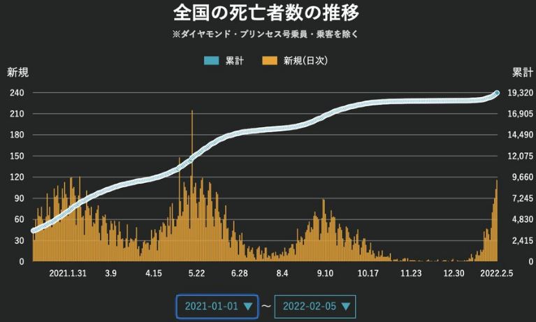 大阪府のコロナ死者数(直近7日間)も2月5日時点で全国ワーストになりました。