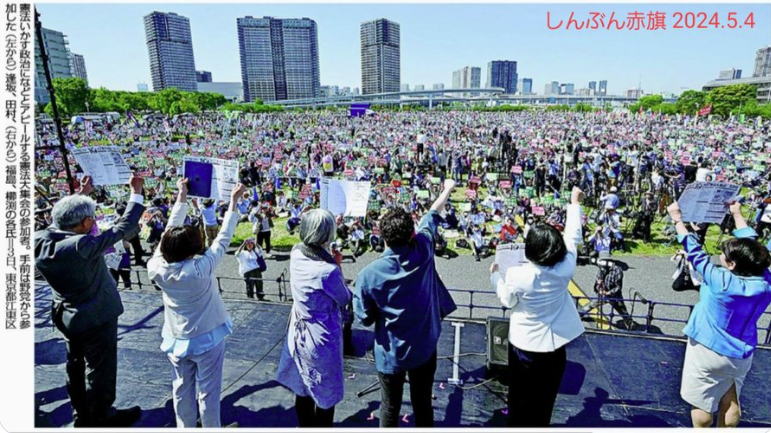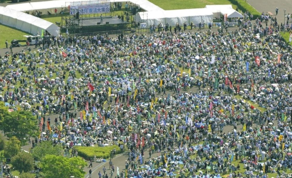 NHKは、32000人参加の憲法大集会↓(東京新聞空撮)と800人参加の改憲派の集会を同等に報じた!
