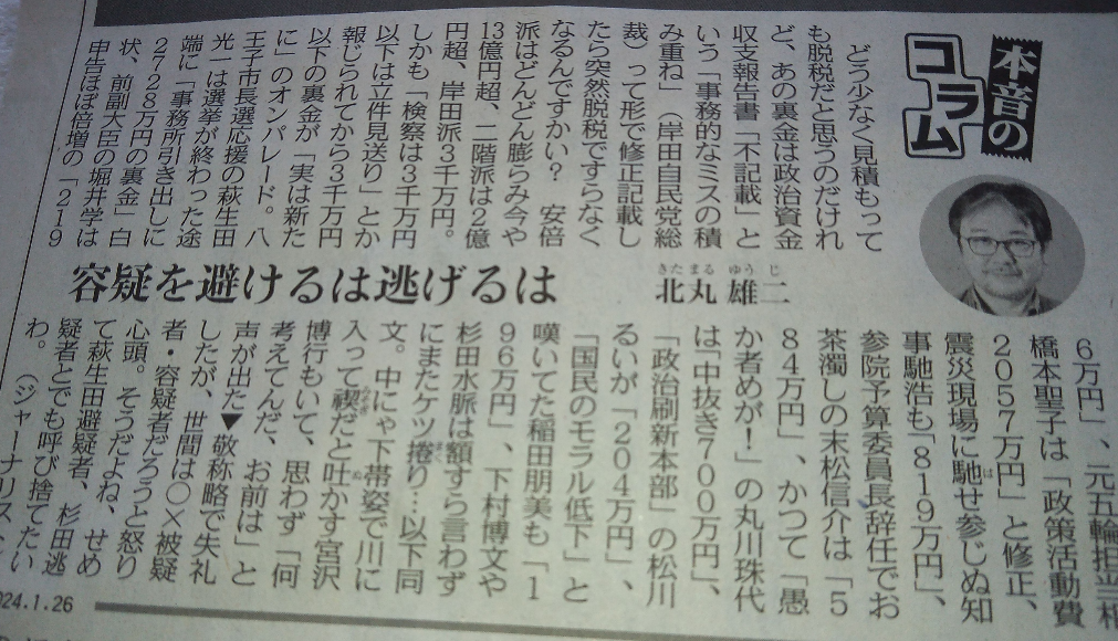 2.1;;新聞に「裏金議員」の名前と金額がでている・・公開されたのは3年分だけ・・