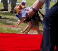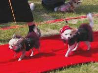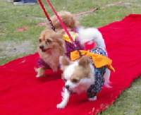 ママ手作りの着物を着て ファッションショーに挑戦中 のライムとチャッピー |