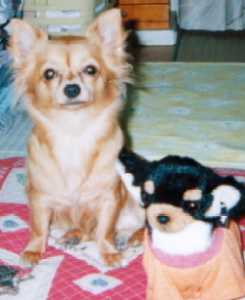 1歳3ヶ月 チワワのぬいぐるみとツーショット。 ぬいぐるみが着ている服はチャッピー君 の服です (^O^) さらに大きくなりました。 顔つきも大人っぽくなったね! |