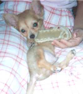 3ヶ月 おうちに来てから1ヶ月がたちました。 だんだんチワワらしい顔つきになってきた でしょ! 体重約1キロ |