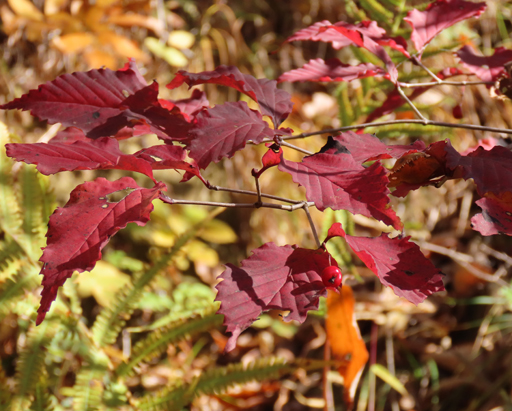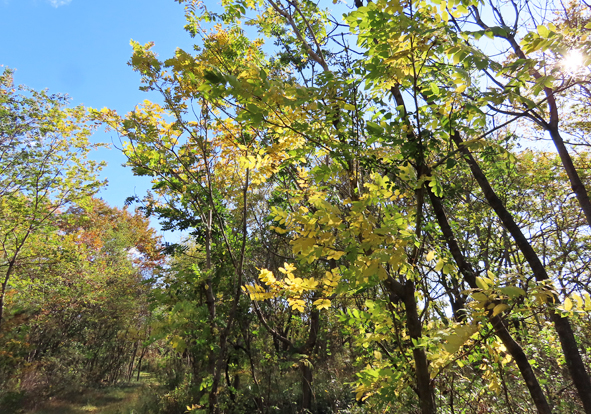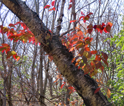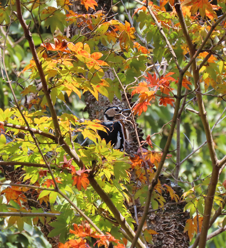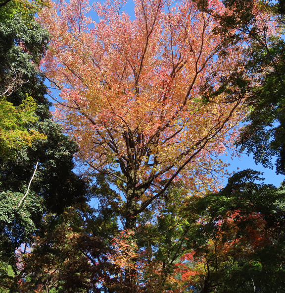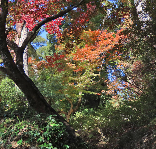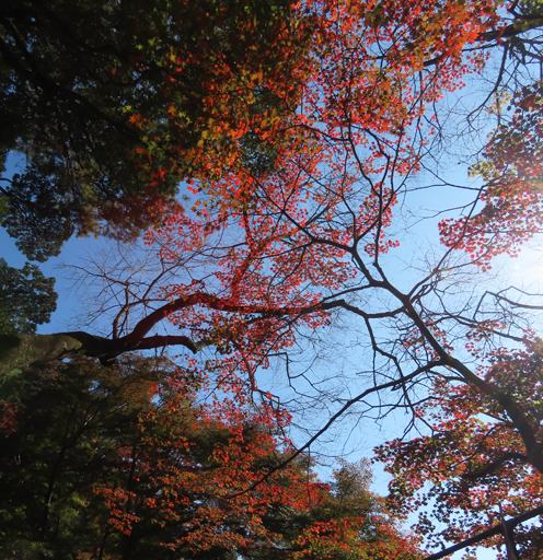![]() 唐沢山にもみじの進み具合を見に行ってきた。 ![]() 少し早いが十分な紅葉。 ![]() モミジバフウの大木 ![]() ミズキは黄色。 ![]() ![]() ![]() 城跡の神社なので大木が多く、見応えがある。 ![]() 神社の本殿周りは石垣を守るためか、大木が切られて ずいぶん明るくなった。 ![]() 日の当たり具合でできる、色むらがいい感じ。 ![]() 尾根道を少し歩く。 ![]() オニグルミは黄色くなる。 ![]() センブリはどうかな? ![]() あった。ずいぶん数が減っていた。 ![]() 大きな株は見当たらない。 ![]() 細々と残っていた。周りの草木に負けている。 ![]() センボンヤリの綿毛(種) ![]() ヤブムラサキ ![]() 完璧な枯れ葉! ![]() 羽を広げたルリタテハ ![]() アカゲラがしきりに木をつついている。 ![]() 大きな巣穴を掘っていた。この冬はここで寒い夜をやり過ごす ことになるんだなあ。春の巣穴より入り口が広く、浅いらしい。 ![]() ![]() オトコヨウゾメも赤くなるねえ。 |