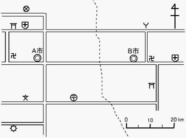 AA市の市役所からB市の市役所までの距離は約何Kmあるか。